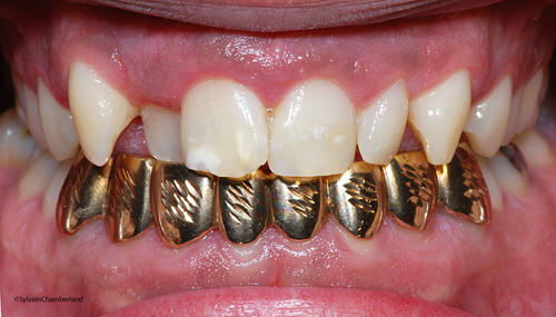 Grillz Grillz: prothèse dentaire décorative en or. Ce modèle est conçu pour s’ajuster sur les dents inférieures. Le grillz est une prothèse dentaire décorative en vogue depuis le retour du bling-bling. La prothèse est généralement faite en méta [...]