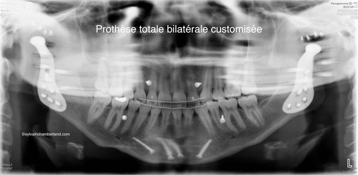 Le cas avec résorption a nécessité le remplacement des articulations par des prothèses totales customisées.